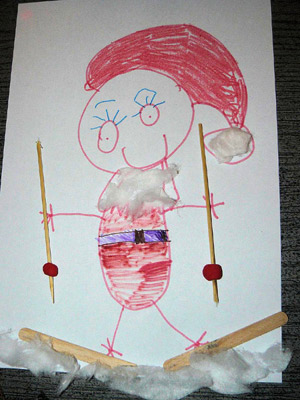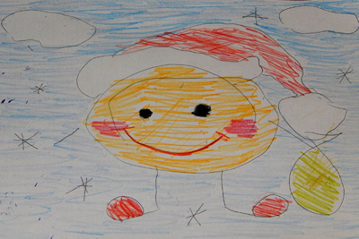 Synek zaczął rysować buźkę, oczka i rączki mikołajowe.
