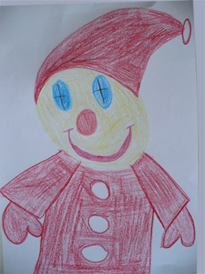 Mama napisała: Marika bardzo lubi bawić się laleczkami. Przebiera je w różne stroje, myje, czesze, karmi i kładzie spać do łóżeczka. Marika z radością namalowała Mikołaja, nie może się już doczekać kiedy przyniesie jej nową laleczkę.